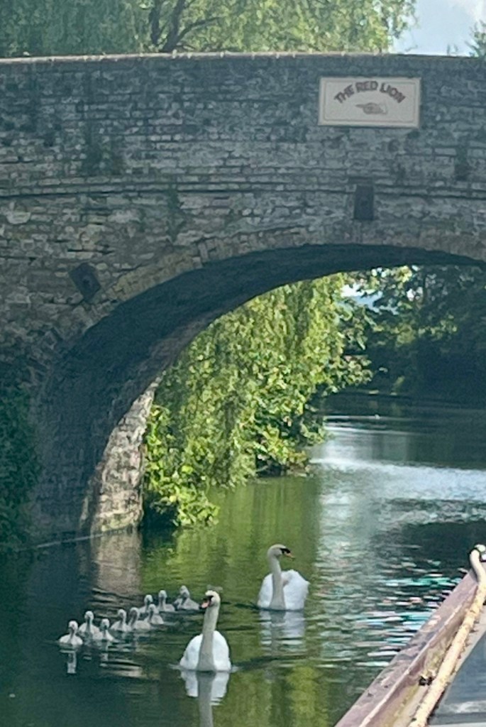 Our stay in Marsworth was made all the more memorable by a family of 12 swans (10 signets) who regularly came to say hello and to eat pondweed from the side of the boat.